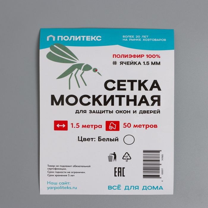 Сетка антимоскитная для окон и дверей, ширина — 150 см, цвет белый (в рулоне 50 м)
