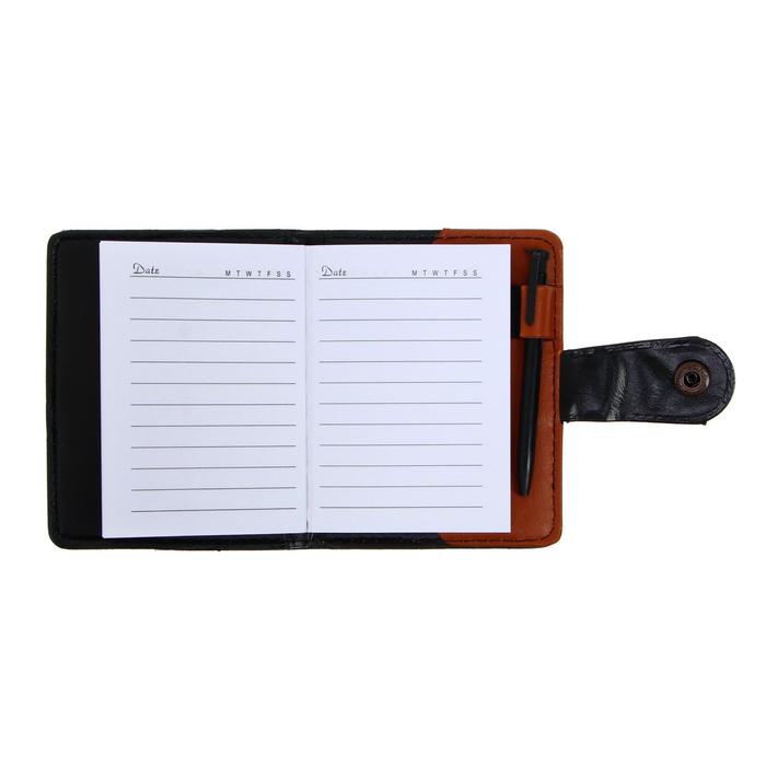 Записная книжка с ручкой А7, 72 листа в линейку, обложка комбинированная ПВХ с застёжкой на кнопке