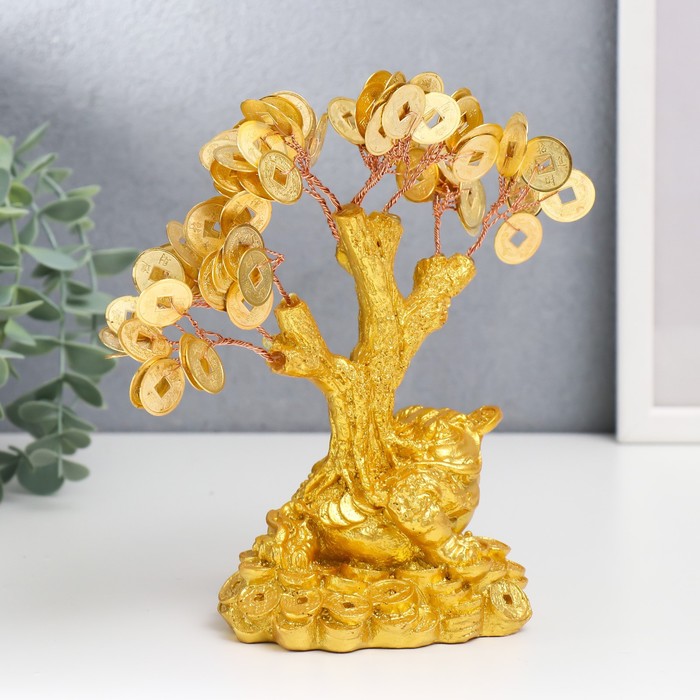 Бонсай денежное дерево "Золотая жаба на монетах" 90 монет 18,5х18х9,5 см