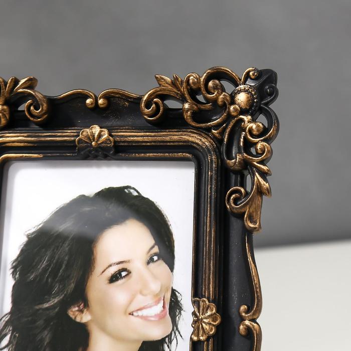 Фоторамка пластик 10х15 см "Эклектика" тёмное золото на чёрном 20,5х16 см