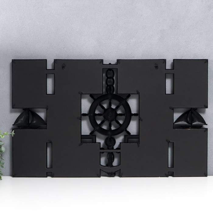 Фоторамка пластик на 10 фото 10х15 см "Якорь и штурвал" чёрная 41х68 см