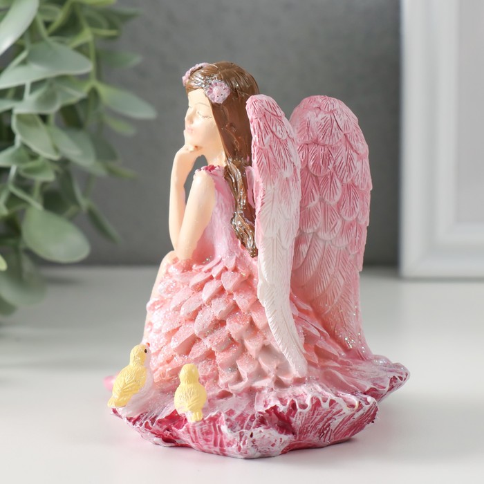 Сувенир полистоун "Девочка-ангел в розовом платье с птичками" розовые крылья 10х8,5х10 см