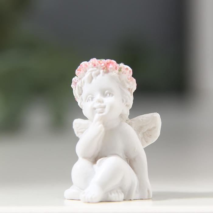 Сувенир полистоун "Ангелок милашка" в венке из роз, МИКС, 3х2х2 см