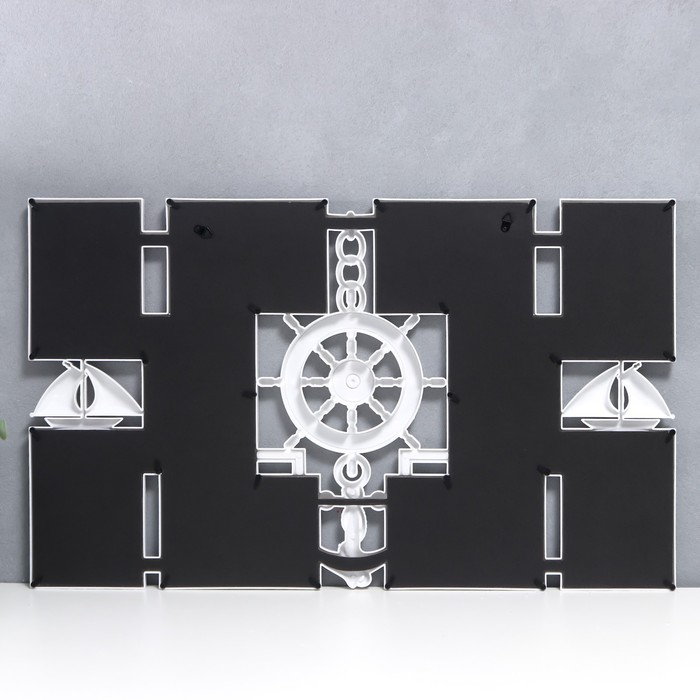 Фоторамка пластик на 10 фото 10х15 см "Якорь и штурвал" белая 41х68 см