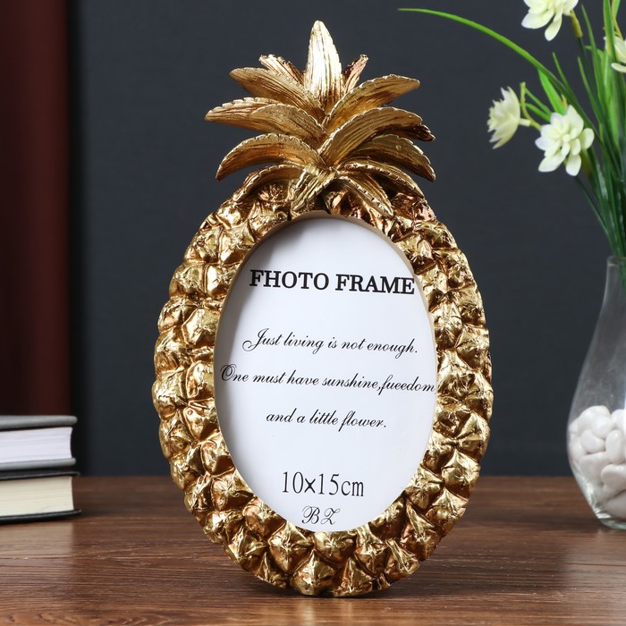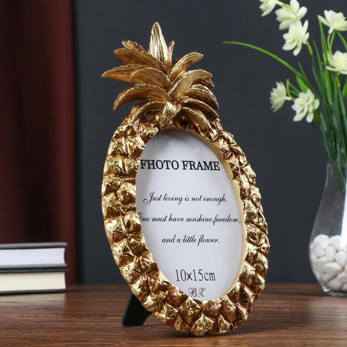 Фоторамка полистоун 10х15 см "Ананас" состаренное золото 25,5х14,3х2,2 см