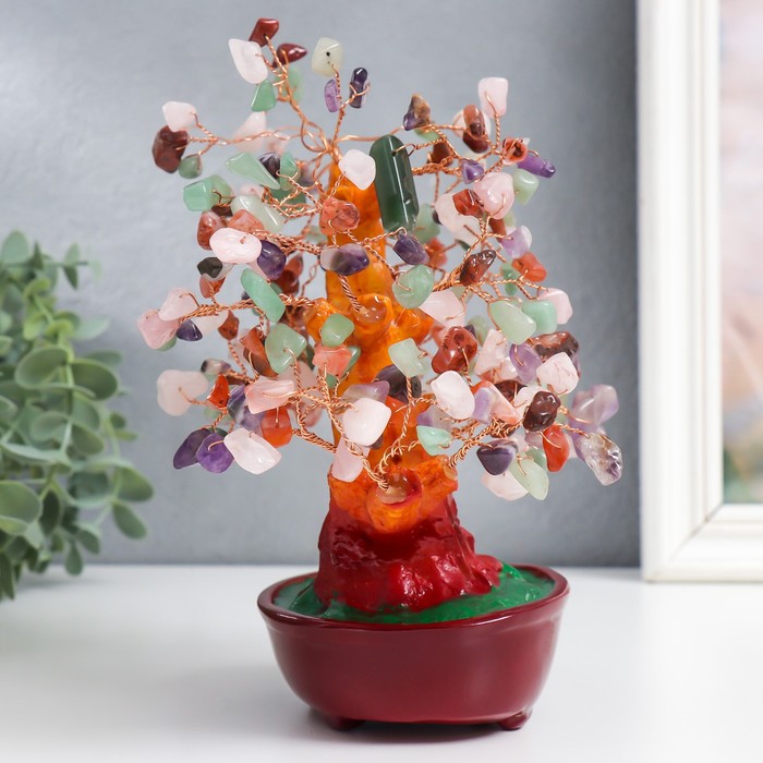 Сувенир бонсай "Разноцветное денежное дерево в овальном горшке" 196 камней 23х9,5х19 см