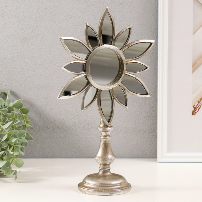 Сувенир полистоун "Зеркальный цветок" серебро 21х9,5х33 см