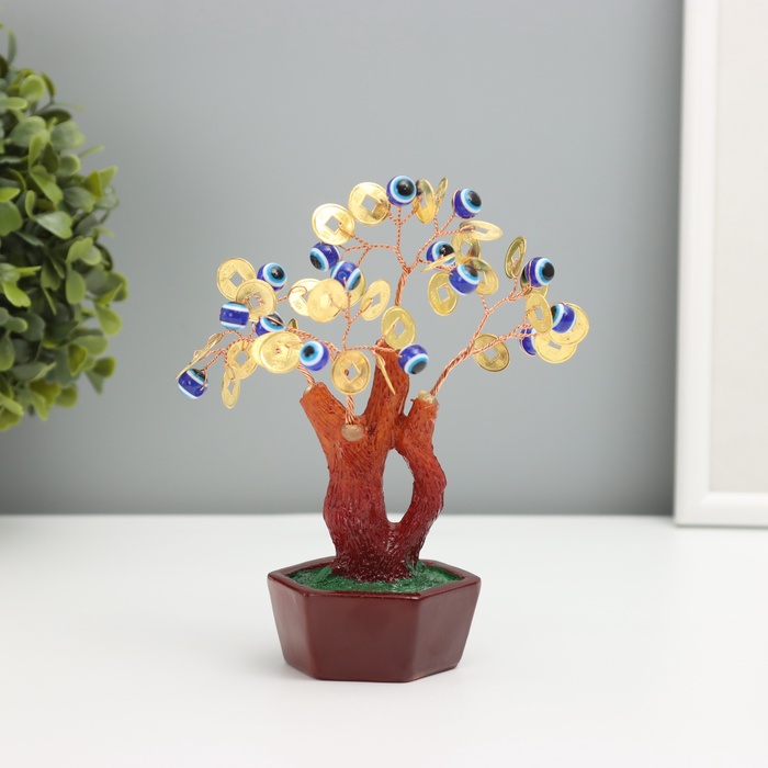 Сувенир бонсай 60 камней "Денежное дерево с тигровыми кристаллами" 13х7х5 см