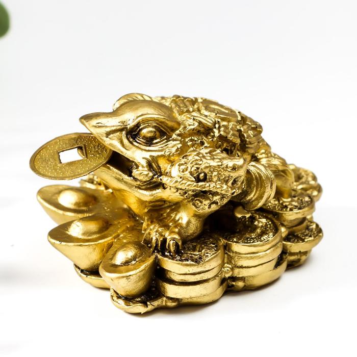 Нэцке полистоун бронза "Денежная жаба инь-ян со слитками золота" 4,8х6,5х8,5 см