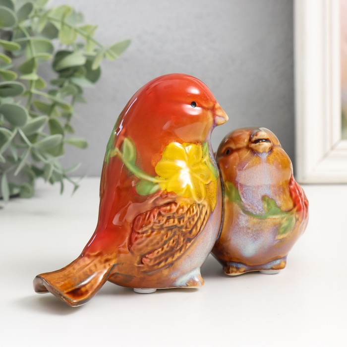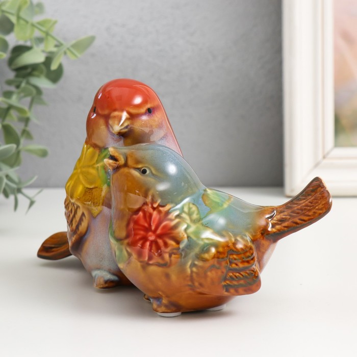 Сувенир керамика "Воробьи с цветами" МИКС 10х16,5х10 см
