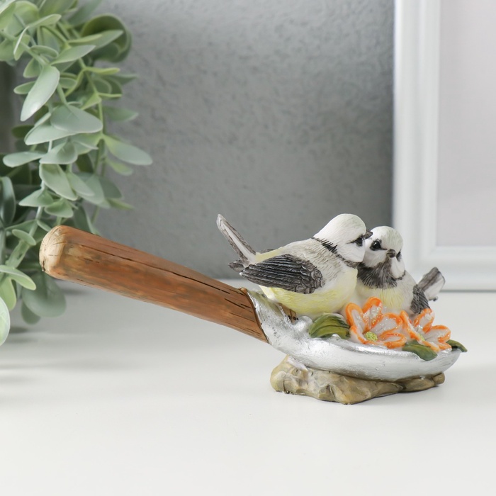 Сувенир полистоун "Синички на лопате, с цветами" 17х5,5х7 см