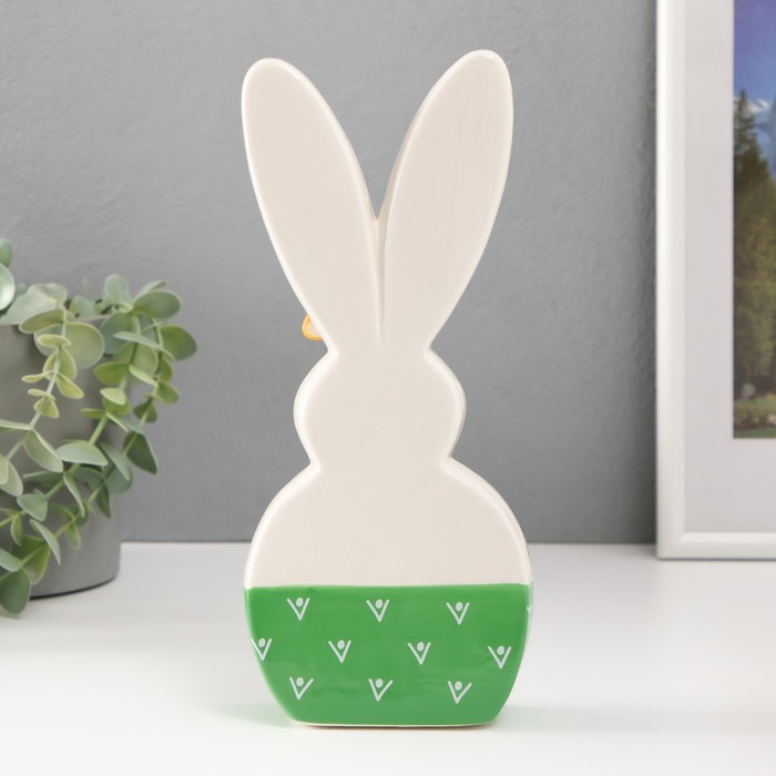 Сувенир керамика "Зайка спящий, с ромашкой на ухе" бело-зелёный 10,4х4,3х23,7 см