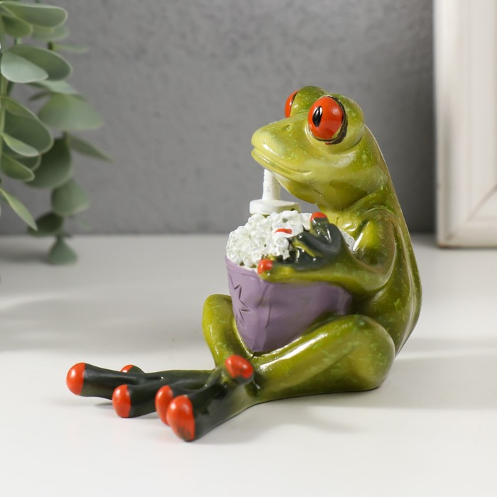 Сувенир полистоун лак "Лягушонок с попкорном и лимонадом" 8,5х11х8 см