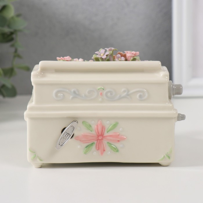 Сувенир керамика музыкальный "Старинный комод с вазой с цветами" 7,5х10,6х18 см