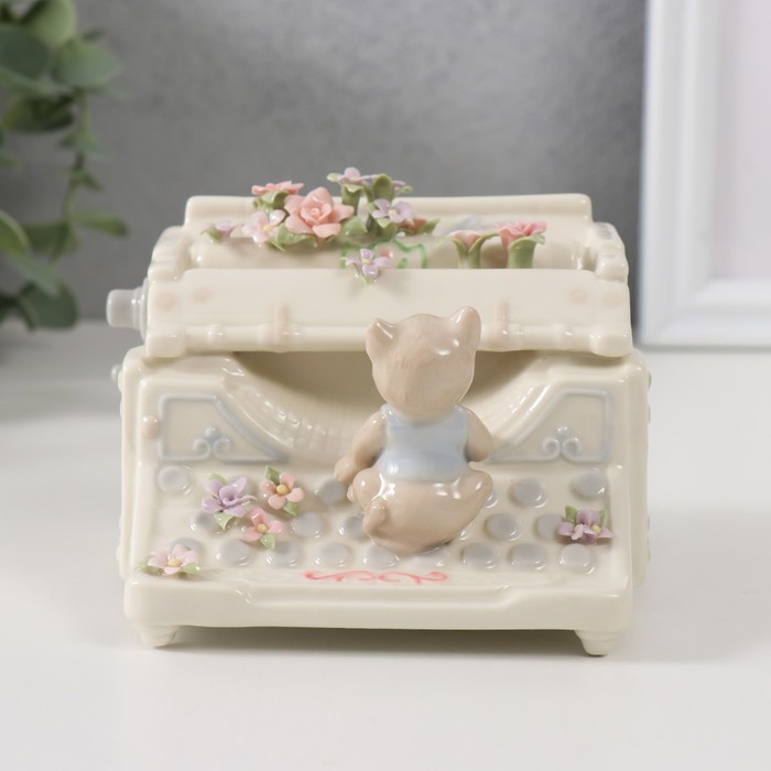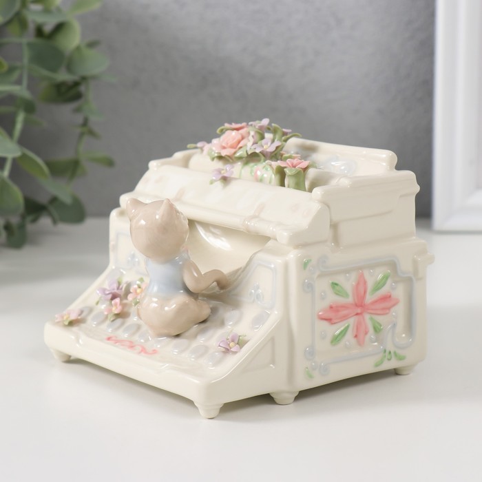Сувенир керамика музыкальный "Котёнок с цветочной печатной машинкой" 9х11х7,5 см