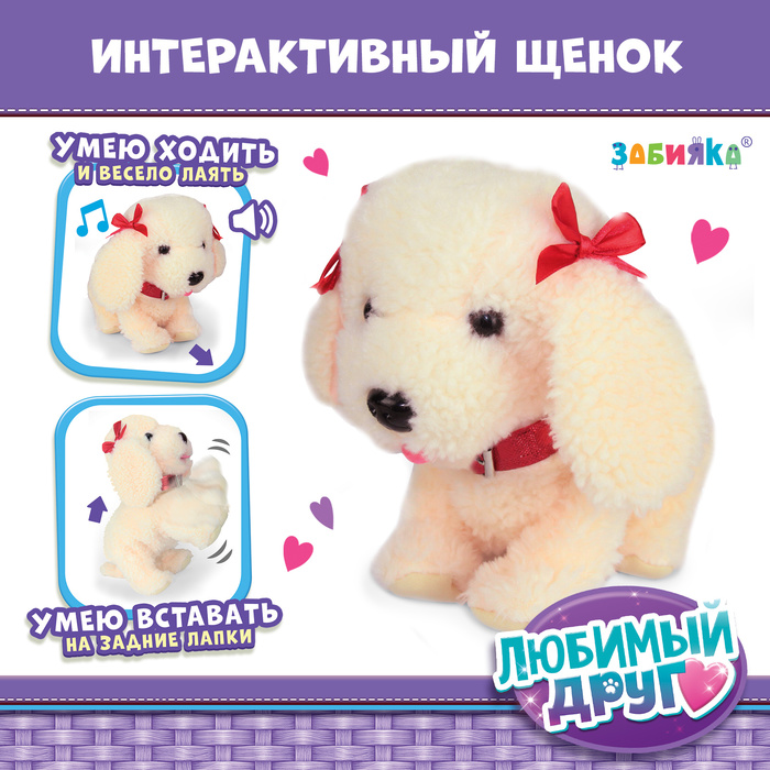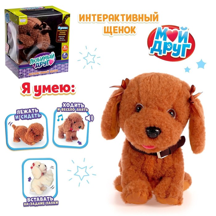 Интерактивный щенок «Мой друг», выполняет команды, реагирует на касания, лает, скулит, ходит