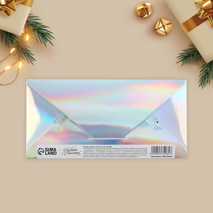 Конверт для денег «С Новым годом», голография, 16,5 х 8 см, Новый год