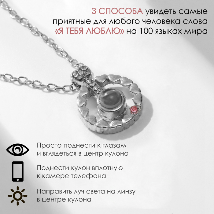 Кулон "Проекция" я тебя люблю, круг сердец, цвет серебро, 40см