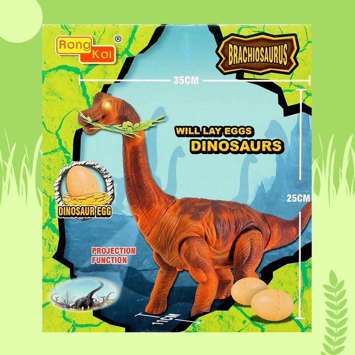 Динозавр «Брахиозавр травоядный», работает от батареек, откладывает яйца, с проектором, цвет коричневый
