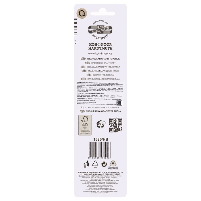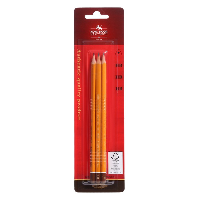 Набор карандашей чернографитных 3 штуки Koh-I-Noor 1580 HB, блистер