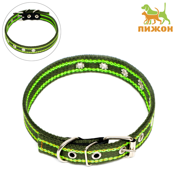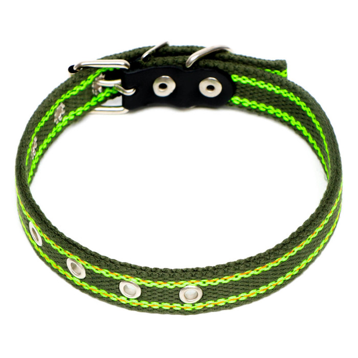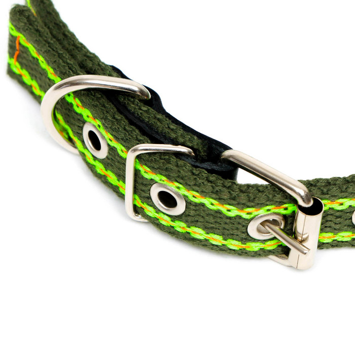 Ошейник брезентовый безразмерный двухслойный, 50 х 2 см, ОШ 22-45 см, хаки/зелёный