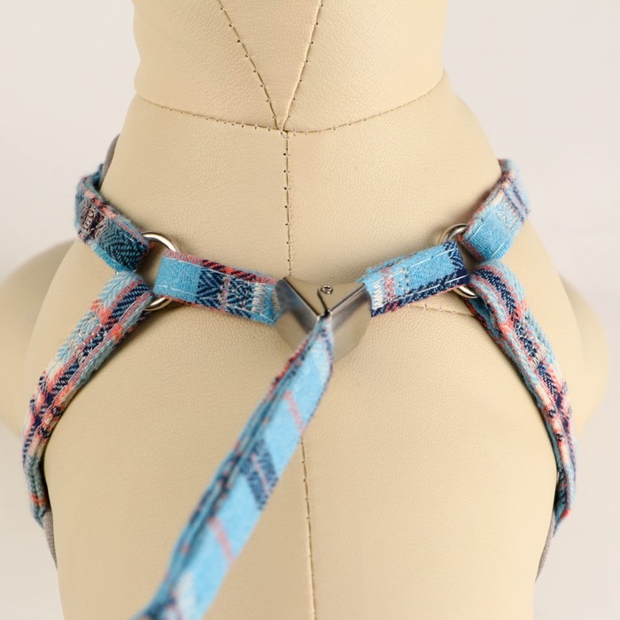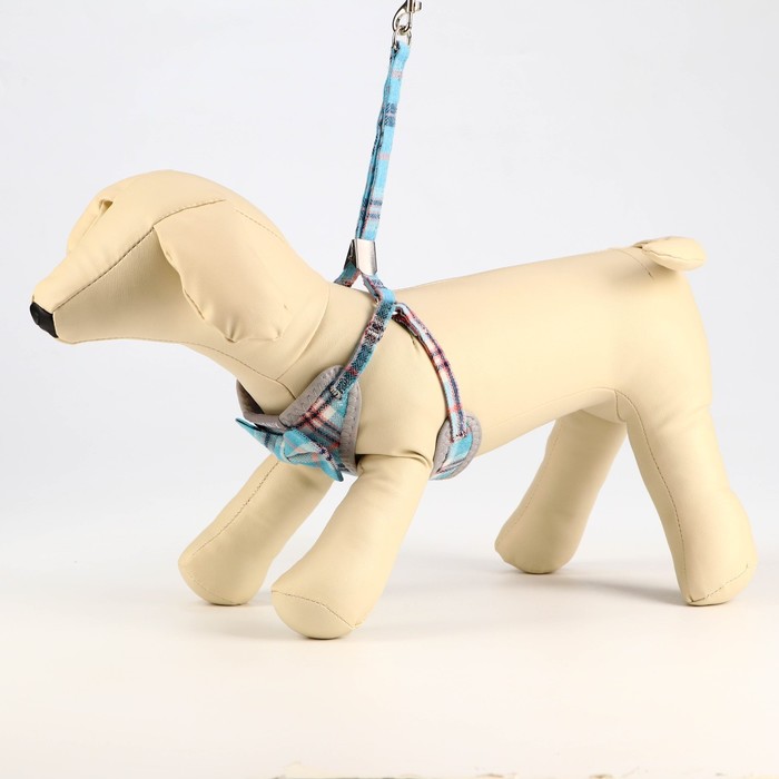 Комплект амуниции с мягкой шлейкой, 1 х 120 см, ОШ 28-54 см,ОГ 36-60 см, серо-голубая клетка
