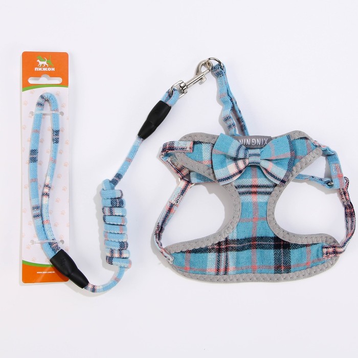 Стильный прогулочный комплект для собак в клетку с украшением в виде бабочки. Шлейка регулируется, поводок круглый прочный , ручка поводка не доставляет неудобств для вас при натежении. Шлея для собак 3 , 5 , 10 , 15 кг средних и мелких пород : шпица , бульдога , чихуахуа , йорка , мопс , такс и маленьких и больших кошек , котов типа мейн кун . Шлейка текстильная , регулируется металическим креплением. Поводок крепится к металлическому кольцу карабином. Шлейка исключит побег животного, если правильно подобрать размер и отрегулировать ремни.