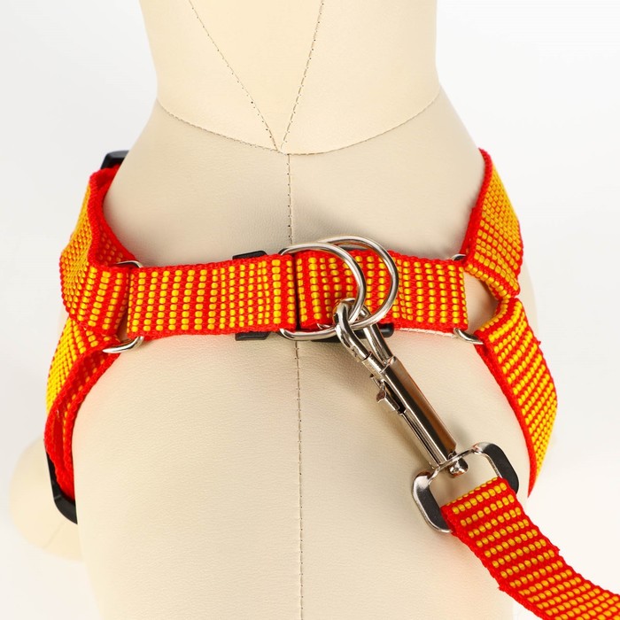 Комплект амуниции рельефный, 2 см, шлейка 44-50 см, поводок 120 см,красно-жёлтый