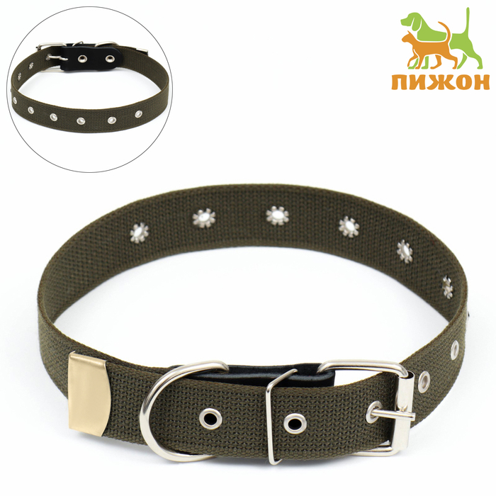 Ошейник брезентовый безразмерный однослойный, 72 х 3,5 см, ОШ 45-60 см, хаки