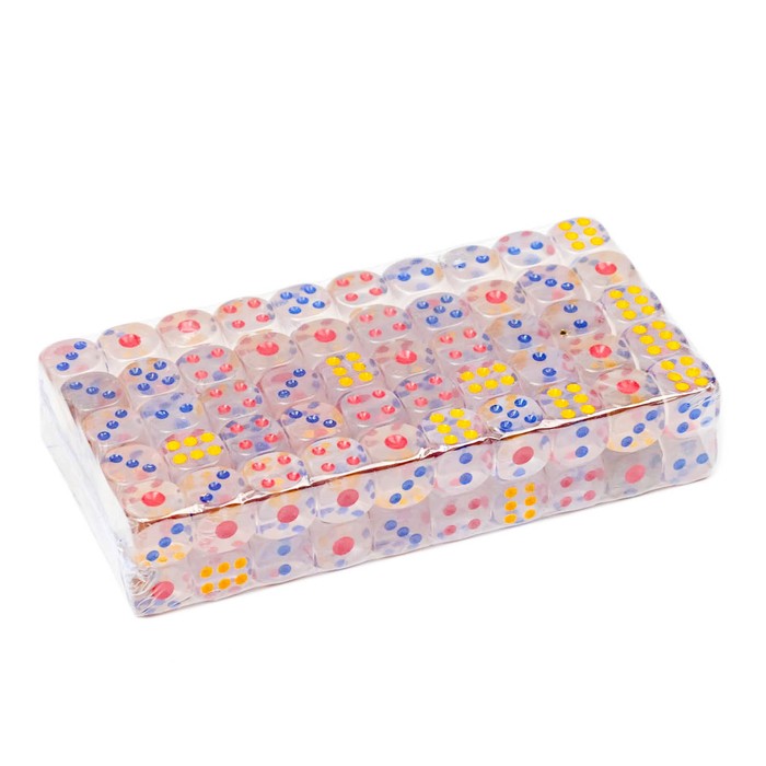 Кости игральные 1.4 х 1.4 см, фасовка 100 шт, прозрачные