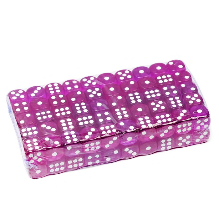Кости игральные 1.4 х 1.4 см, фасовка 100 шт, прозрачные, розовые-фиолетовые