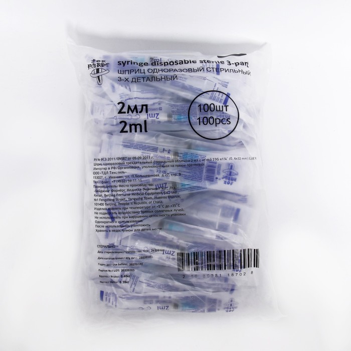 Шприц 2,0 мл трехкомпонентный с иглой 23G Хуайань за 50.00 ₽ Купить оптом и в розницу на tijorat.com | Быстрая доставка | скидки